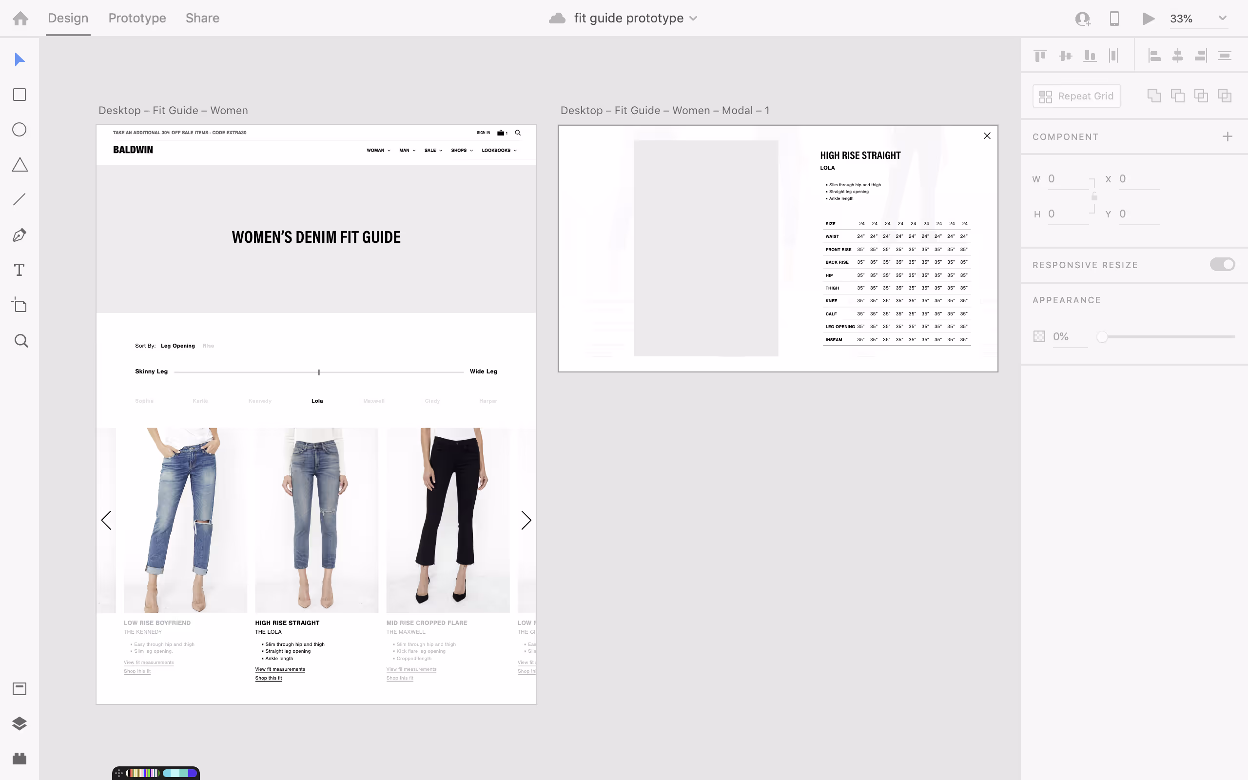 BLDWN was getting a significant number of inquiries regarding their women’s fits. In order to provide a better customer experience and reduce the demand on customer service staff, we built a bespoke, interactive fit guide. The staff could direct customers to the guide. Relevant product detail pages would like to it as well.